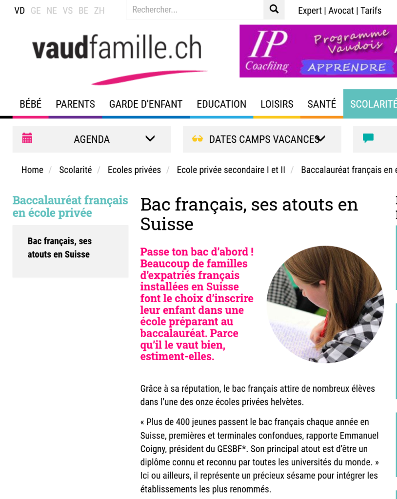 Le BAC sur Vaud Famille